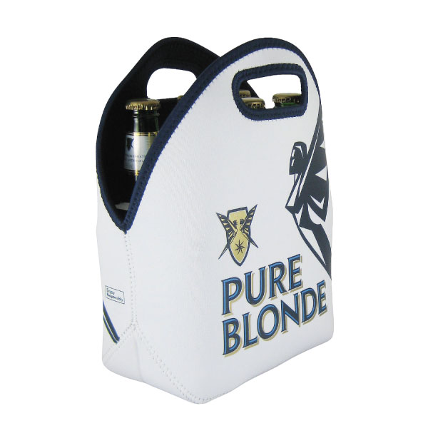This handy neoprene bag is great for carrying up to a 6 pack of bottles to a party or picnic. Available in a vast assortment of neoprene colours and printed in a full colour sublimation print.