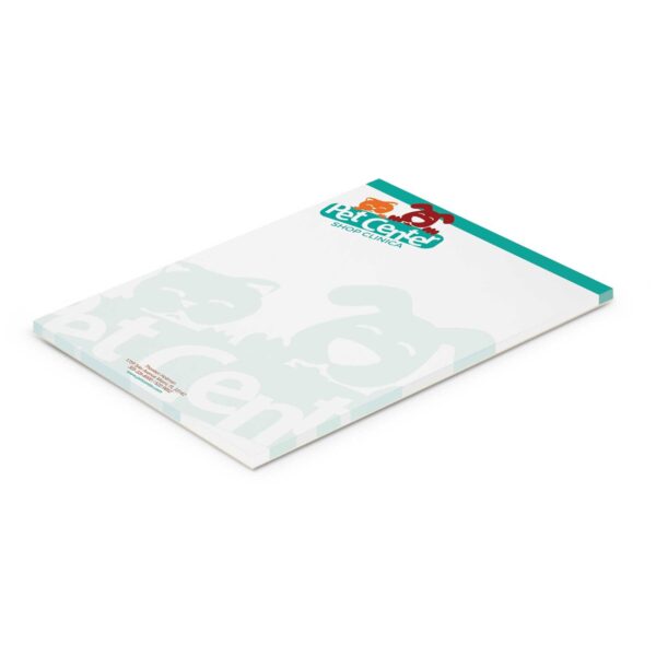 The A5 Notepad - 50 Leaf is very affordable with 50 leaves of quality 70gsm paper and a cardboard back. It is printed using four colour process, which gives the option of unlimited spot colours or stunning full colour at no extra cost. PMS colour matches are only approximate. Edge-to-edge printing is available and a lead time of 25 working days applies to this product.