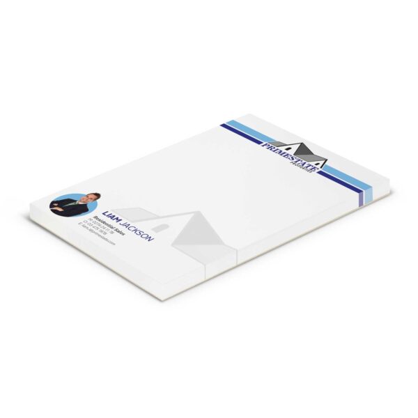 The A7 Notepad - 50 Leaf is very affordable with 50 leaves of quality 70gsm paper and a cardboard back. It is printed using four colour process, which gives the option of unlimited spot colours or stunning full colour at no extra cost. PMS colour matches are only approximate. Edge-to-edge printing is available and a lead time of 25 working days applies to this product.