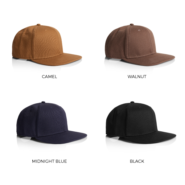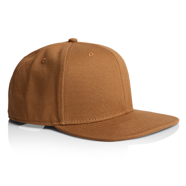 - 100% cotton canvas, high profile snapback cap, structured front