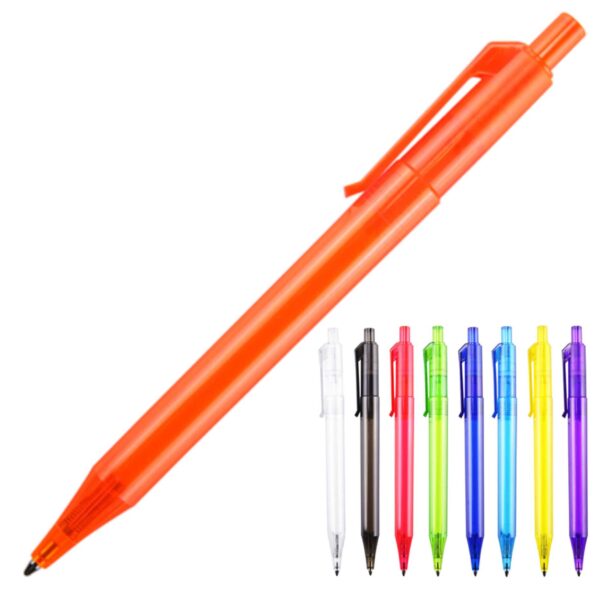 The Albany Plastic Pen is a simple, slim and bright transparent colored plastic pen made from high quality ABS transparent plastic. Click action with high quality German black ink refill, 1200 m, tungsten carbide ball.