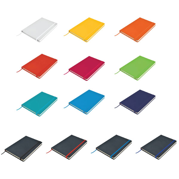 The Appel A5 Notebook with Elastic Closure is a PU A5 sized notebook with coloured elastic retaining closure and matching ribbon page maker. It features 96 lined cream pages (70GSM).