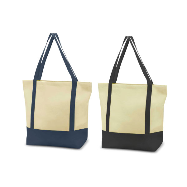 The Armidale Tote Bag is a reusable two tone tote bag with a fashionable natural look and externally sewn carry handles for added strength. The longer handles are designed for carrying it on a shoulder and it has a large base gusset for added carrying capacity. It is manufactured from 80gsm non-woven polypropylene material.