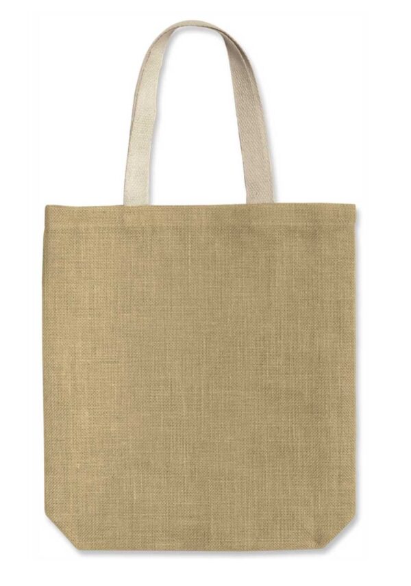 The Atherton Jute Bag is a large natural jute tote bag with strong unbleached cotton handles. It has a gusset in the base for increased carrying capacity.