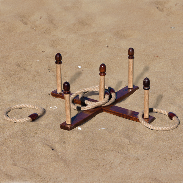 This vintage inspired quoits set makes a perfect gift for your clients/customers. It is also perfect for Christmas gifts for the person who has everything! Great for team building events or for just having a game in the garden with a BBQ and a beer! The set includes 2 x Antique natural wood grain interlocking running boards and 5 x wooden stakes with simple fit together system, 4 x natural rope quoit rings & instruction sheet. It is supplied in a natural canvas bag with 2 carry handles. Priced here for a 1 colour print on the bag.
