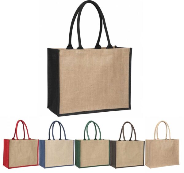 The Ballina Jute Shopper Bag is made of 100% jute and are laminated for extra toughness and durability, making them perfect as reusable shopping bags. They are fabulous for green marketing campaigns or for those who simply want to contribute to the preservation of the environment. These bags come with simple and plain look with contrasting coloured panels and handles.