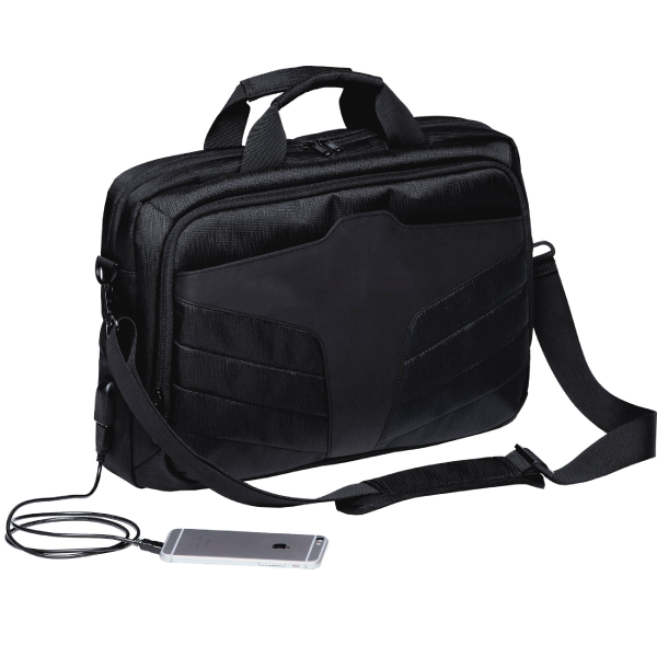 This brief bag is perfect for work/office. It is made from 900D water resistant polyester, so even in a downpour your paperwork will stay dry! There are 3 main padded & zippered compartments, including a 15.6" laptop and 10.1" iPad/tablet compartment. There are multiple organiser pockets and a handy external USB charger port integrated cable to charge your device on the go. Detachable/adjustable padded shoulder straps make the bag comfortable even when full, and all finished off with metal buckles and accessories