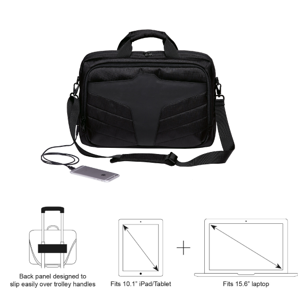 - Includes compartments for a 15.6” laptop and 10.1” tablet