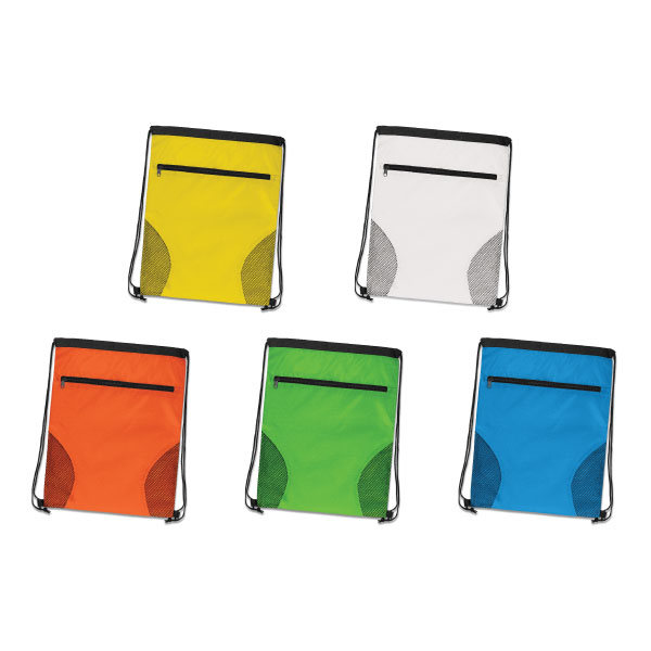 Our Berringer Drawstring Bag is a stylish drawstring backpack with decorative mesh accents and a large zippered external pocket. It is manufactured from 210D polyester with robust braided loops at the base to secure the drawstrings.