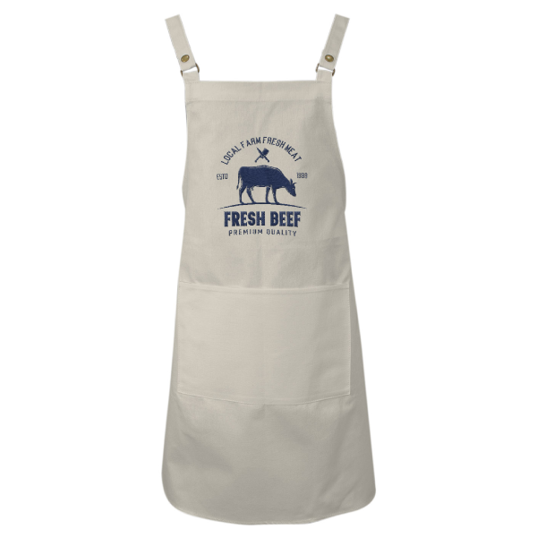 This bib apron is made from sturdy cotton canvas and has sewn on straps & brass rivets & buckles. We can closely match any Pantone colour for the fabric of the apron, so the colour possibilities are endless! Priced here for 6,000 embroidery stitches your logo will look like the icing on the cake to this apron! Check out our other range of PromoPal aprons