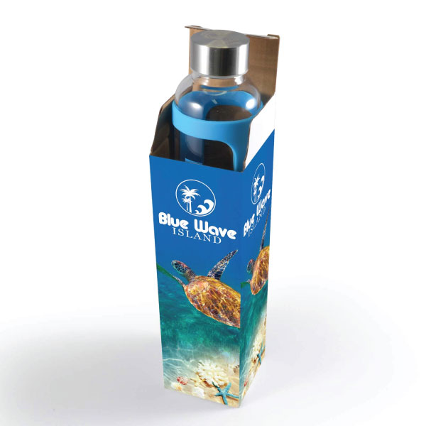 The Brighton Glass Bottle with Silicone Sleeve is a 550ml borosilicate glass drink bottle with leak proof lid. Protective silicone sleeve that doubles as a carry handle. Available in a bright range of fashion colours. This glass bottle is intended for cold use only, not suitable for carbonated liquids or freezing. Handwashing recommended.