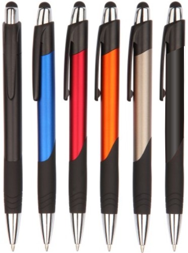 The Bronte Stylus Pen are designed with a matt finished plastic barrel and a rubber finished black grip that can be supplied in a great range of colours that include shiny chrome trim, solid black clip and push action. German black ink with writing capacity to 1,200m makes this a promotional stylus pen to last.