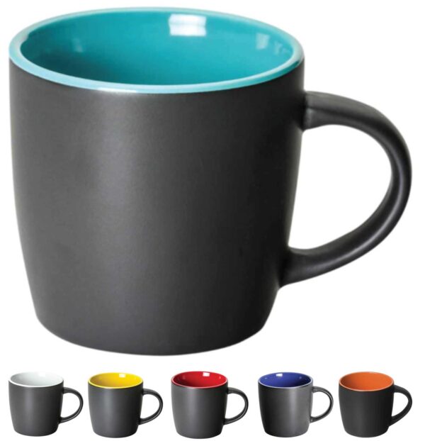 With its smooth black matt finish, eye-catching glossy colourful inners and easy grab and go handle, the sturdy Castleton Coffee Cup is guaranteed to be an office favourite.
