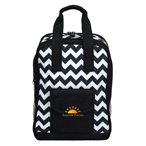 Have your picnics in style with this gorgeous chevron picnic set! This set is for 4 people and the set includes: 4 x knives, 4 x forks, 4 x spoons, 4 x 9″ plates, 4 x plastic wine glasses, 4 x cotton napkins, 2-pcs salt & pepper shakers, 1 x bottle opener, 1 x cutting board, 1 x cheese knife. There are also dual mesh pockets on the side and a Velcro closure front accessory pocket on the front. The set also features a large insulated cooler compartment to keep your food cool.