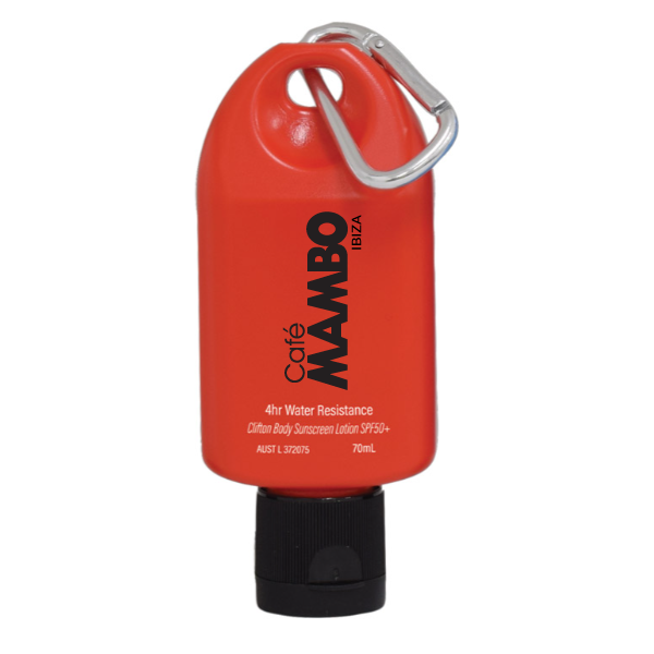 Keep safe in the sun with this SPF50+ sunscreen. It has a handy carabiner clip, which you can attach to your bag or to a lanyard, so you always have it within reach. It is 4 hour water resistant and comes in 4 classic colours. Priced here for a 1 colour print in 1 position.
