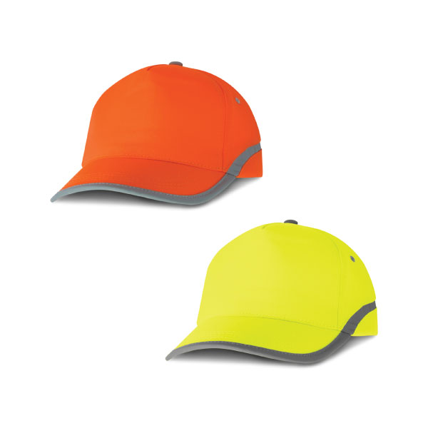 The Crew Hi-Vis Caps is a structured five panel polyester, high visibility safety cap with reflective piping which matches the button and embroidered eyelets. It has a pre-curved peak, a sweat band and an adjustable Velcro closure which allows one size to fit most people. This product aids with visibility in the workplace.
