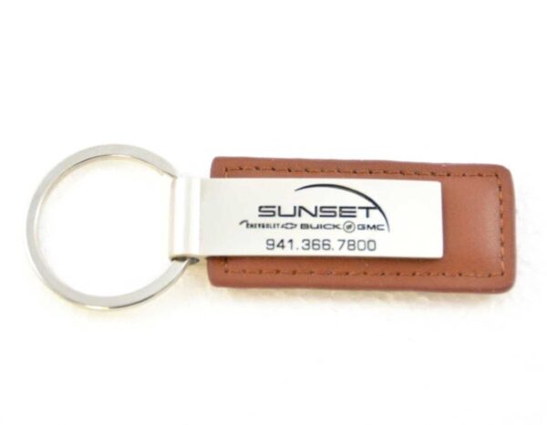 The Custom Leather/Metal Keyring is made from zinc alloy which has a white finish, split leather and 25mm split ring.