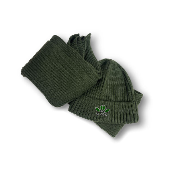 The Darley Scarf and Beanie Set includes a warm cable knit scarf and beanie. It's presented in a cotton drawstring. This is priced for embroidery on the beanie. Embroidery on the scarf and print on bag is available.