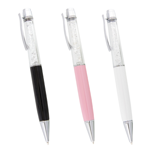 The Dianella Stylus Pen is an elegant metal twist action pen with beautiful crystals at the top. The bottom half of the pen comes in a solid colour and the top half showcases the loose crystals within the barrel. This stunning pen would make a wonderful corporate gift when engraved or pad printed with your client's logo or personalisation. Black ink flows smoothly from a quality Parker style refill. Priced here for a 1 colour print in 1 position on the pen