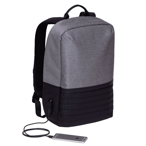This backpack is perfect for work or travel. The bag has an external USB charger port with integrated internal cable to charge your device. The main zippered fully cell foam padded universal storage compartment includes dual 15.6” laptop and 10.1” tablet compartments with Velcro closure. It has a zippered passport/security pocket on the lumbar back panel, to keep your valuables safe. It also features a hands free mobile/media suction cup panel on the shoulder strap. The shoulder straps are mesh backed and padded and the back panels are also contoured with padding for comfort. The back webbing panel can slip over a wheeled bag handle when travelling, keeping your hands free for coffee or snacks!