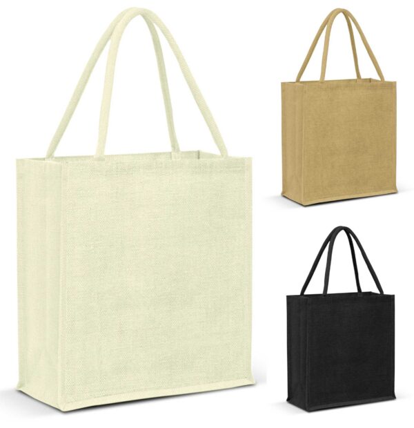 The Eden Jute Bag is a large laminated jute tote bag with a gusset and padded cotton handles. The bag is available in 3 popular coours.