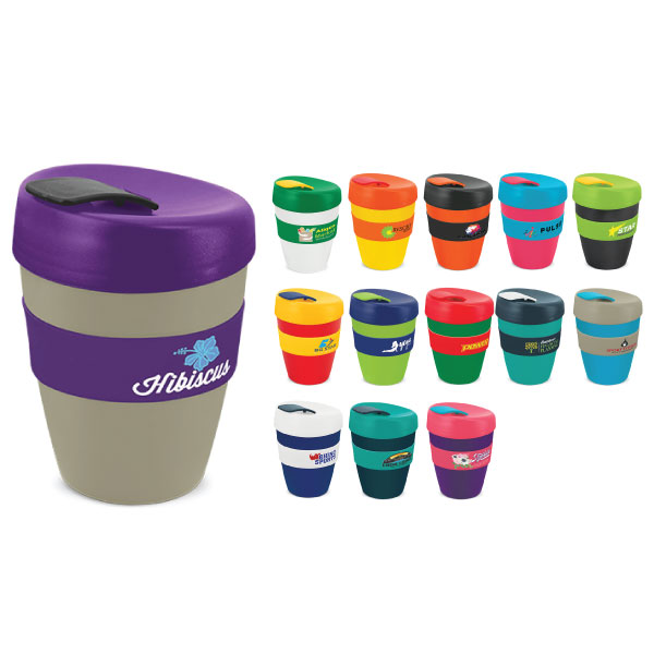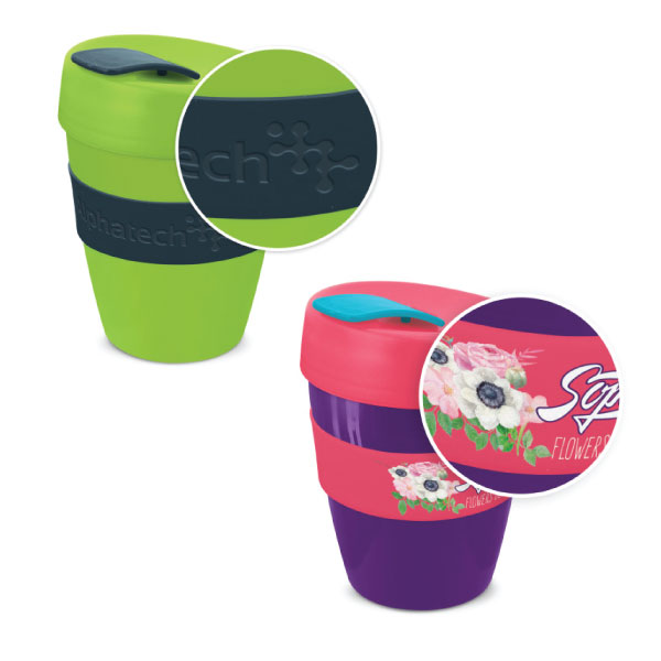 The Express Deluxe Cup - 350ml is a design inspired coffee cup with a heat-resistant silicone band and a secure screw on lid with a splashproof flip closure. It is manufactured from polypropylene which is shatterproof, odour-resistant and BPA-free. The cup, lid, flip closure and band can be mixed and matched in any colour combination from the colour palette at no extra cost. It can be presented in an optional black gift box. Handwashing is recommended.