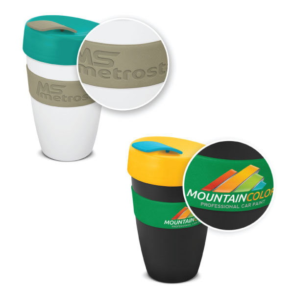 The Express Grande Deluxe - 480ml is a reusable coffee cup with a heat-resistant silicone band and a secure screw on lid with a splashproof flip closure. The cup, lid, flip closure and silicone band can be mixed and matched in any colour combination from the colour palette at no extra cost. An optional black gift box is available on request. Handwashing is recommended.