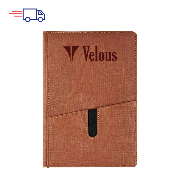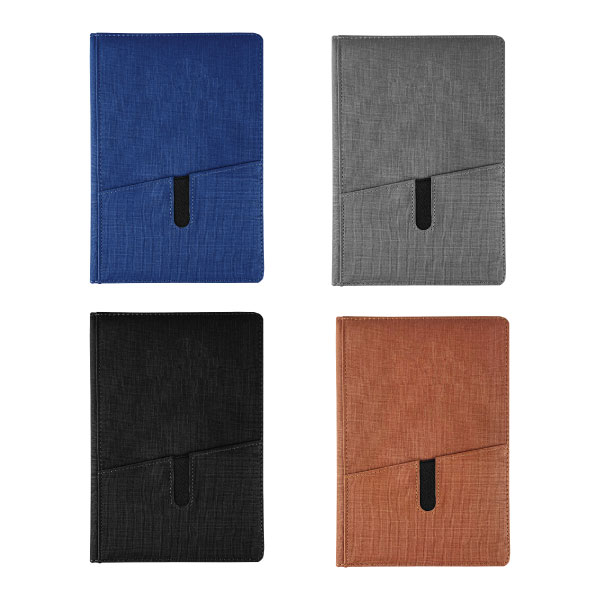 This notebook features a trendy cotton style neatly stitched hard PU cover with a convenient front pocket. It contains 80 leaf (160 pages) of 100gsm lined off-white paper.