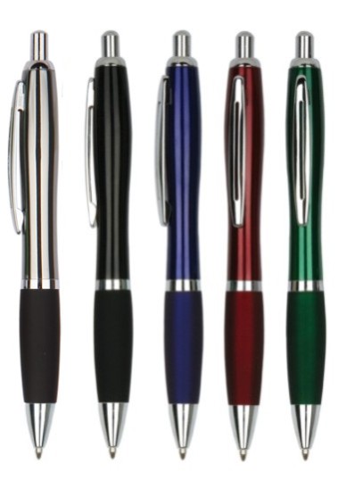 The Eyre Brass Metal Pen is a classically styled, high quality brass pen. It features metallic coloured brass barrel, shiny chrome trim, contoured rubberised grip with push action, retractable nib with extended writing length using Parker style German black ink to 1,800m writing capacity.