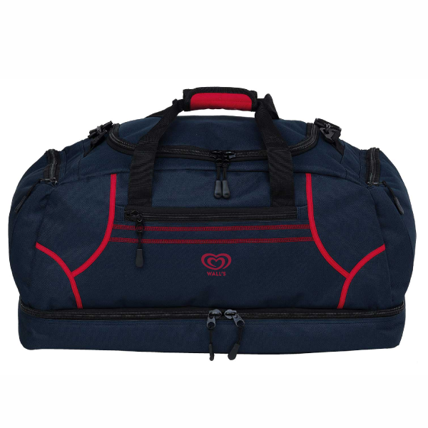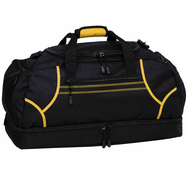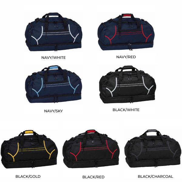 This sports bag is perfect for schools, universities & clubs. It comes in a wide assortment of colours, so there is a colour to suit everyone! The bag has a huge main compartment with an oversized U-shaped opening, which is ideal for large items. It has 2 zippered end compartments and a really handy drop bottom zipped compartment for all your accessories. It also has an adjustable padded shoulder strap when you need to go hands free! It has heavy duty oversized zippers and accessories and also rubber feet for added protection.