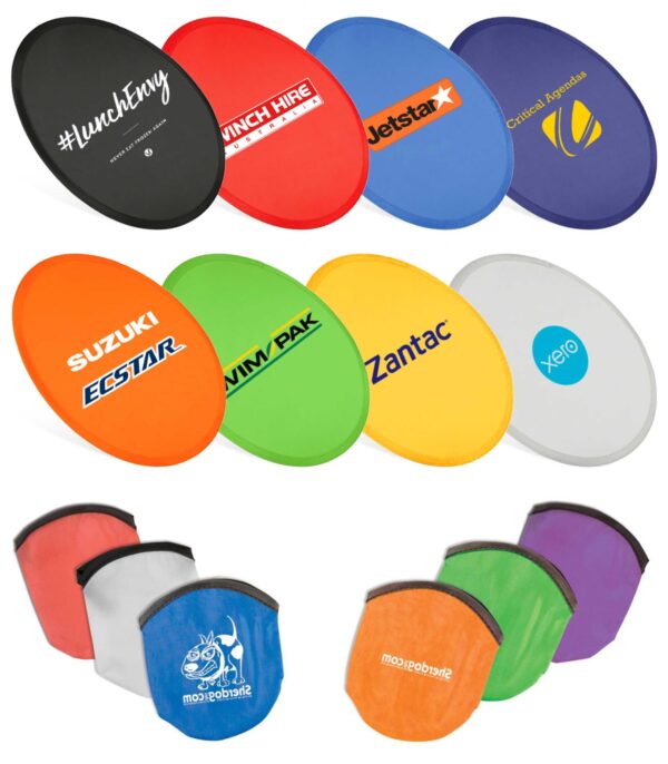 The Fold Up Flyer is a cost effective and fun way to promote any outdoor or sporting event. Made fron flexible, lightweight nylon, the flyer can be folded up and stored in it's own pouch. This product is printed on both flyer and pouch and is a popular giveaway at sporting carnivals and council events.