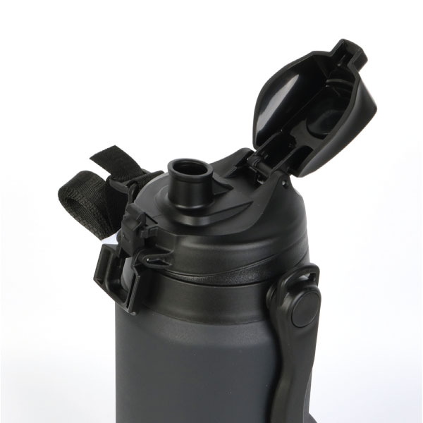 - Stainless steel flask with carry strap