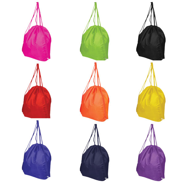 The Frost Drawstring Bag is a strong drawstring bag made from durable 210D nylon material with cords for use over the shoulder or to use as backpack style. This superior quality bag has reinforced eyelets at base and is ideal for the active lifestyle or when a bright, colourful option is needed for your next promotion.