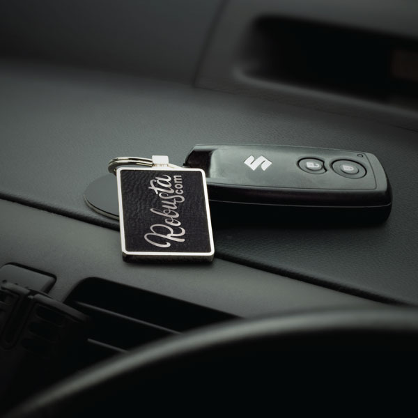 Make this stylish key ring your next giveaway and showcase your branding! The Granard Rectangle Keyring is made from a shiny nickel with a black textured PU that engraves to a silver finish. It comes in a black individual gift box.