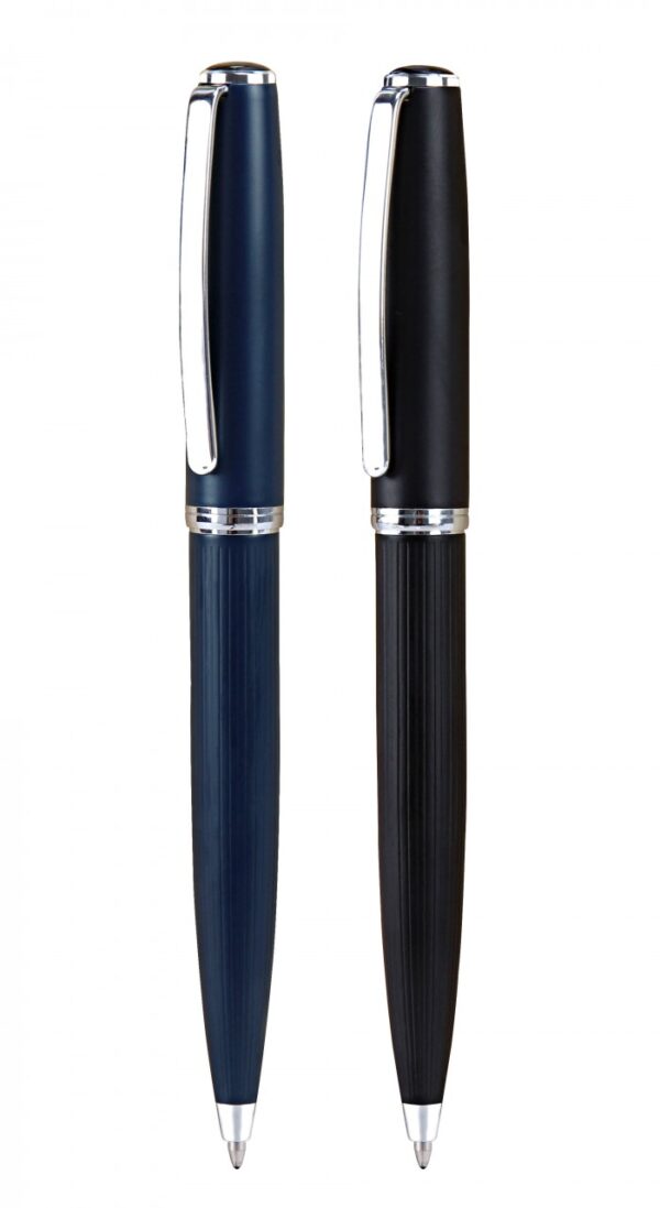 The Hampton Matt Brass Pen features a 1.0mm writing tip for a professional writing experience. These pens have a twist action and come in navy or black with chrome trims, and can be branded with your logo using pad printing or laser engraving. They are equipped with black ink and have an extended writing distance using Parker refill German dokumental black ink to 1,800m capacity.