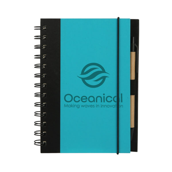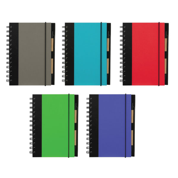 The Harwood Notebook and Pen Set includes a hard cover colourful notebook with double metal spirals and elastic closure band. Inside there are 80 sheets of 70gsm lined paper. The set also has a pen with kraft paper barrel, solid ABS trims and 1mm blank ink refill.