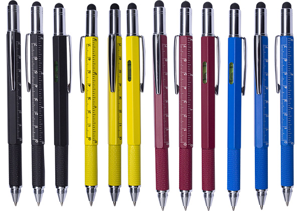 The Hudson Metal Multi Tool Pen is a 5 in 1 tool featuring pen, flat and phillips head screwdriver, metric and imperial ruler, level and soft touch stylus. Combined with Cross style German dokumental black ink this product would be great for any clients in the building or construction industry.
