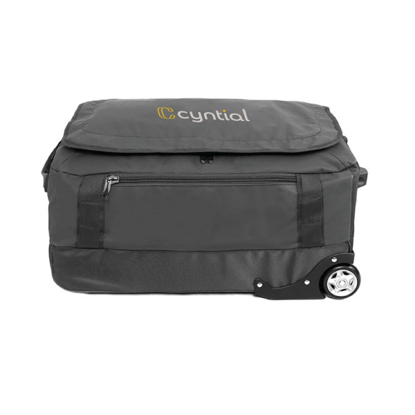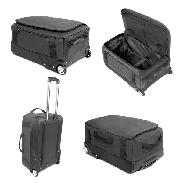 Travel with your brand on display with the Janet Travel Bag. It has a large main compartment with u-shape opening and a hard plastic bottom section with studs. It includes a front zippered pocket and mesh pockets under the flap. This travel bag has a premium trolley system with plastic stand