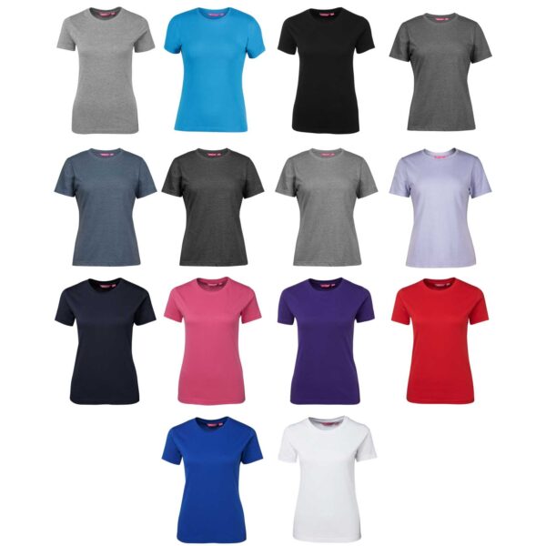 The JB's 100% Cotton Ladies Tee is a heavy 165gsm ring spun jersey knit fabric, with twin needle double stitched seams, self-fabric tape on inside of neck and shoulders for improved stability, vertical side seams that minimise twist in the tee’s body and complies with Standard AS/NZS 4399:2017 for UPF Protection.