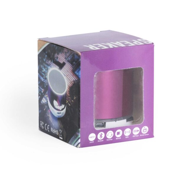 The Limelight Bluetooth Speaker is a compact Bluetooth® docking speaker with illuminated inside. Outside surface especially designed for laser printing to illuminate the marked logo. Bicolor design with smooth finish and Bluetooth® 3.0 connection, offers 3W power, hands-free function, a micro SD card slot up to 32GB, FM radio function, auxiliary line input via 3.5mm jack connection and non-slip rubber mounts on the base. Compatible with iOS and Android, includes mini USB charging cable, 3.5mm auxiliary jack cable and comes in an attractive design box.