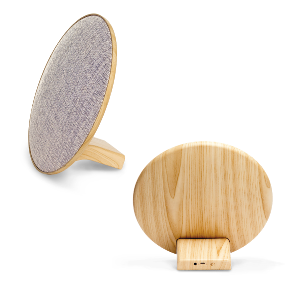 This stunning Bluetooth speaker will make the centre piece of any room. It is made from ABS wood grain with a fashionable beige heather fabric speaker face. It is Bluetooth wireless with a 10 metre range and is compatible with all Bluetooth enabled smartphones. It has a rechargeable 1200mAh lithium-ion battery and delivers up to 4.5 hours of playtime. USB charging and Aux-in cables are included. Supplied in a black presentation box, this speaker would make an excellent client gift & for Christmas presents