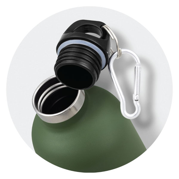 The stainless steel Mallard Vacuum Bottle is double walled and vacuum insulated. It has a neat powder-coated finish and will keep drinks cold for 24 hours or hot for up to 12 hours. The bottle is BPA free and has a secure screw-on metal lid.