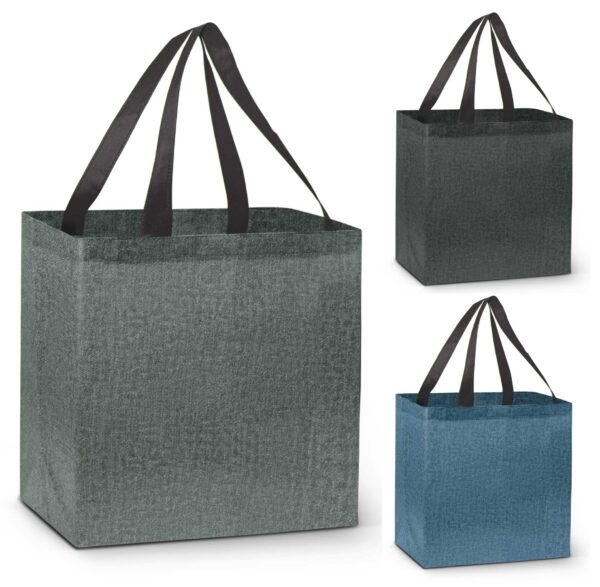 The Mansfield Tote Bag is an affordable large reusable shopping tote bag with a gusset. It has an on trend heather style finish and is manufactured from 80gsm non-woven polypropylene. It does not have a reinforced base board but is ideal for carrying bulky items and groceries.