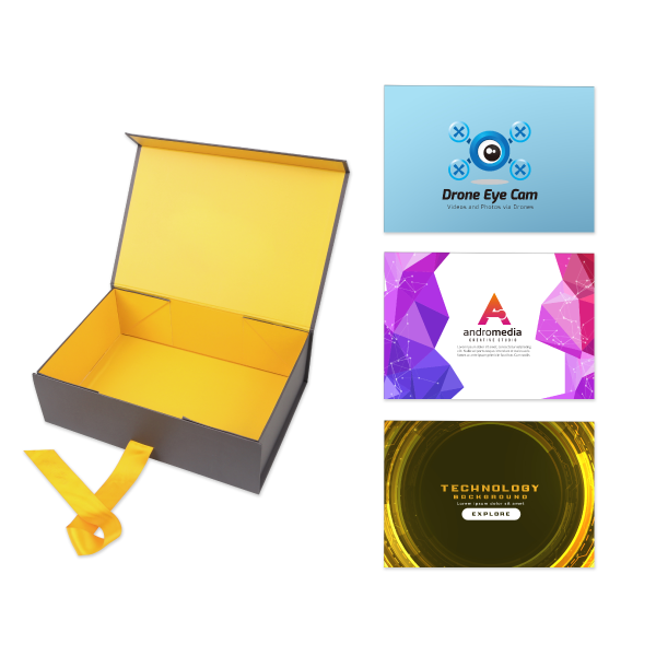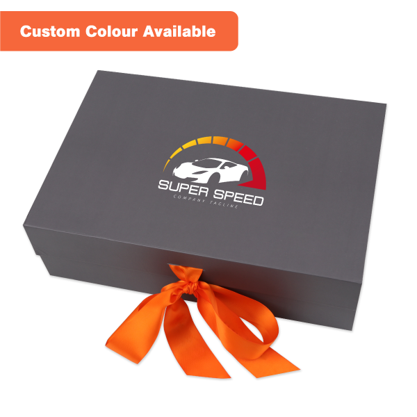 This medium foldable box is a great showcase for your business. The outside of the box can be fully customised with your brand colours & logo. The box includes a magnetic closure to keep everything inside secure. Finished off with a ribbon for that extra pizazz! Check out our listing for the large boxes if you prefer something a little bigger!