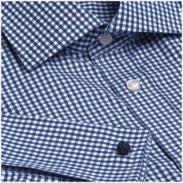 This shirt is made from 65% polyester & 35% cotton yarn dyed gingham check, it will be a hit with everyone in the office. The shirt features a fashion collar and single breast pocket & French cuffs.
