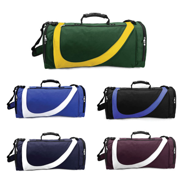 The Michel Sports Bag is a simplistic design with main zippered compartment and a large zippered pocket on each end. Made from durable denier nylon this 41 litre capacity sports bag is a handy addition to any team event. LIMITED STOCK AVAILABLE