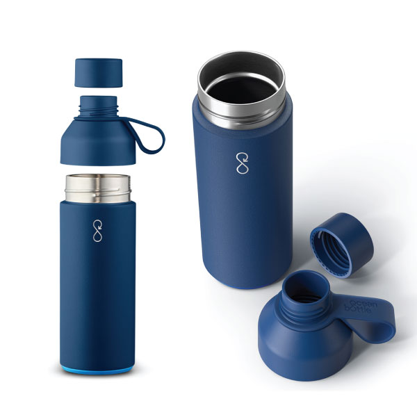 The award winning Ocean Bottle uses 90% recycled stainless steel and recycled ocean-bound plastic for the base. The 500ml double wall vacuum bottle keeps drinks hot for 6 hrs and cold for 18 hrs. It has a anti-leak dual opening lid to stop leaks and make cleaning easy. Features a non-slip base, soft grip, and durable powder coated finish. Every Ocean Bottle order funds collection of 11.4 kg of ocean-bound plastic. Pad print or engraving available.