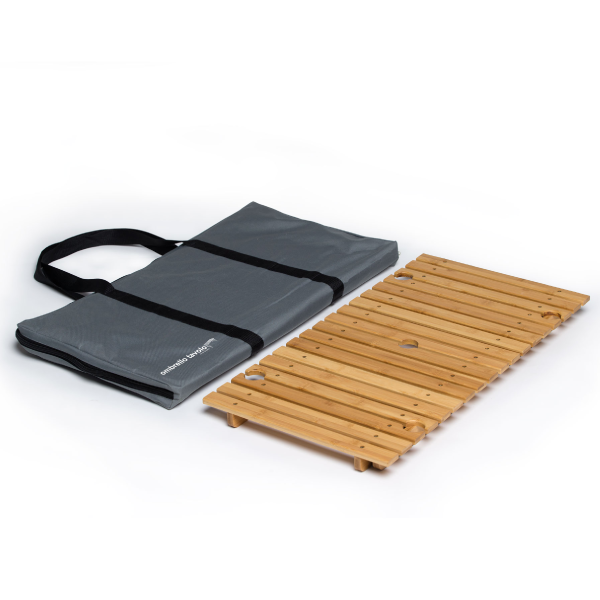 The Ombrello Tavolo Table is made from eco friendly bamboo, and will be a hit at any picnic! It is supplied in a zippered carry bag with shoulder straps to make transportation easy. It features 18 slats with 4 cleverly integrated wine glass holders. It also has a central hole for umbrellas, so you can relax and keep cool whilst enjoying your cheese & wine!