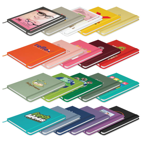 This A5 PU-finish hard cover notebook comes in a stunning range of colours. Inside it has 80 leaves (160 pages) of 70gsm lined white paper with an elastic closure. Belly band, personalisation and foil printing available at additional cost.