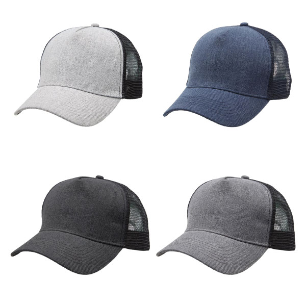 - Heathered fabric peak and front panel with nylon mesh side and back panels